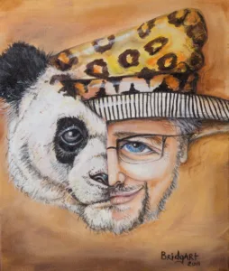 Enlarging on the theme of are we different Cheryl created large number of chimeras of people and animals one ‘East and West’ depicting the Director Chris West and a Panda she gave to him as a memento when he went to his new job in Scotland.