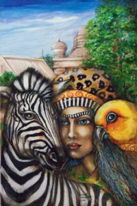 The Santos Conservation Gallery will be filled with colourful dreams, converting the walls into a magical place. I have a deep passion for art and nature. Within a dream-like presence I have tried to capture the animals and birds personality. I have spent many days at Adelaide, Monarto and Taronga Zoos sketching the animals and visitors highlighting their differences and similarities and the consequent kaleidoscope of colour. My Art reveals a shared purpose, and a richness of human interaction and imitation. Themes of appreciation, conservation, and the human connection will be showcased in a series of narrative art works.