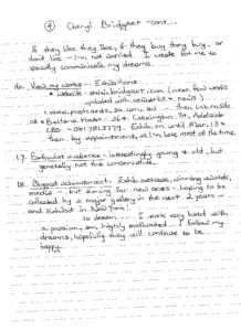Writing his handwritten letter to her grandchild Cheryl became very open to her feelings and philosophy of her art and career.