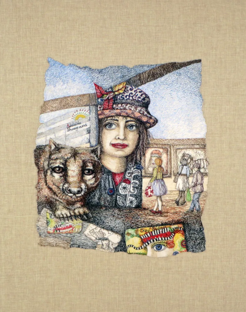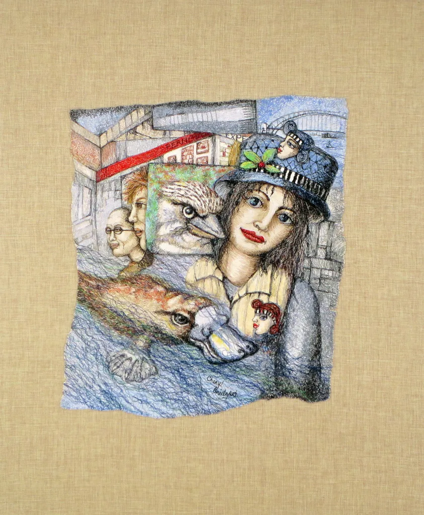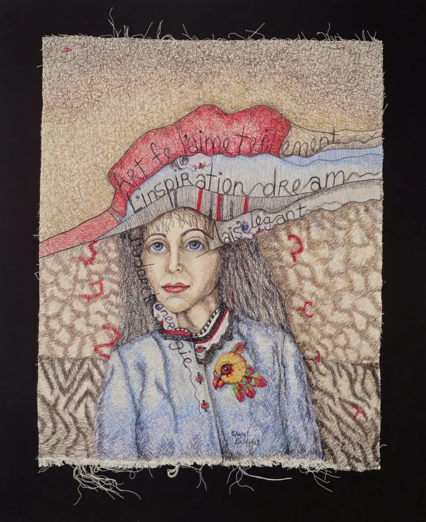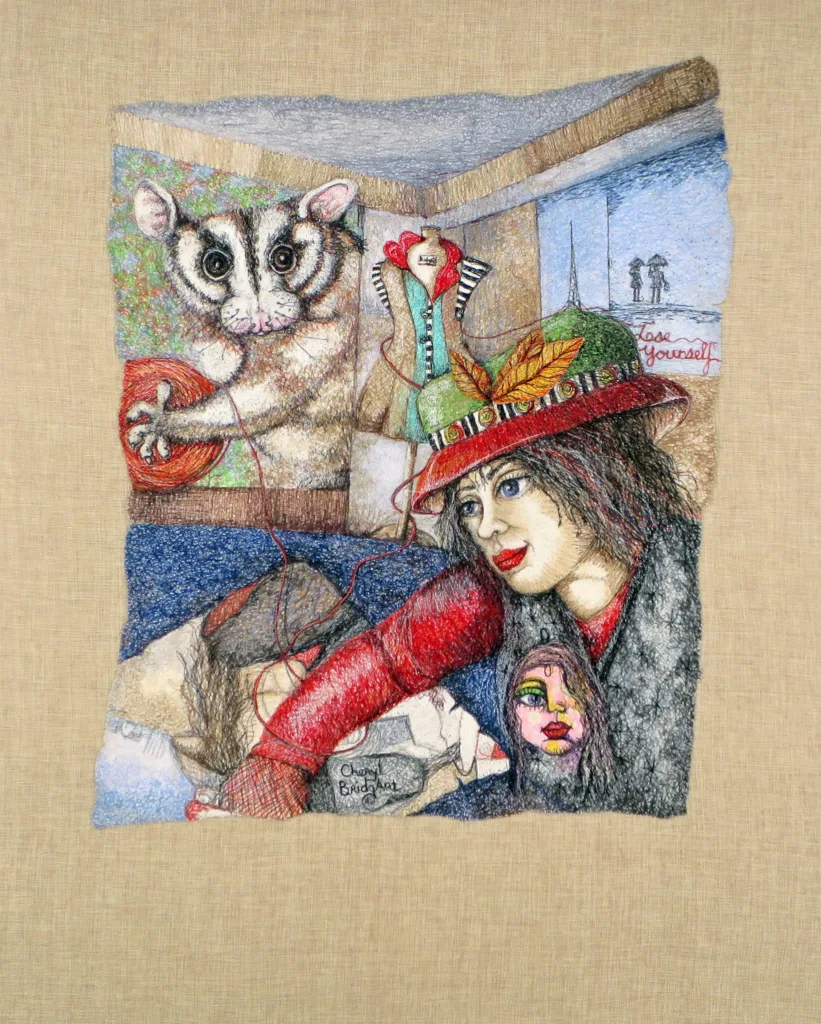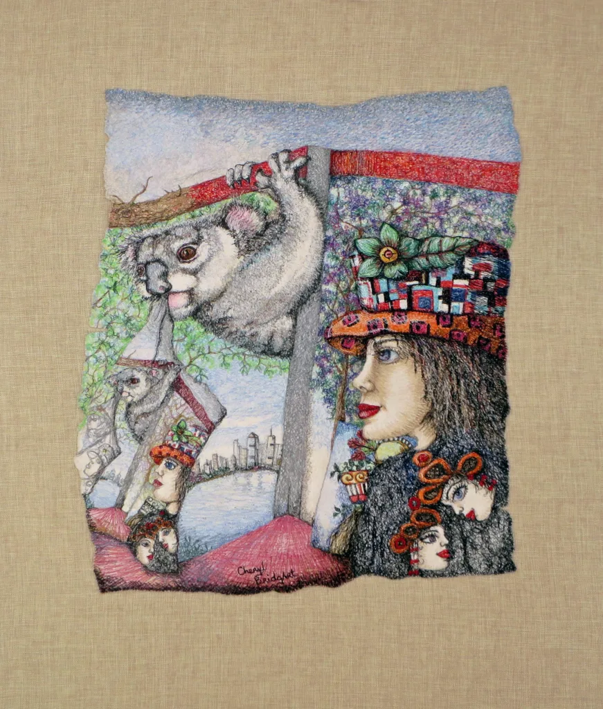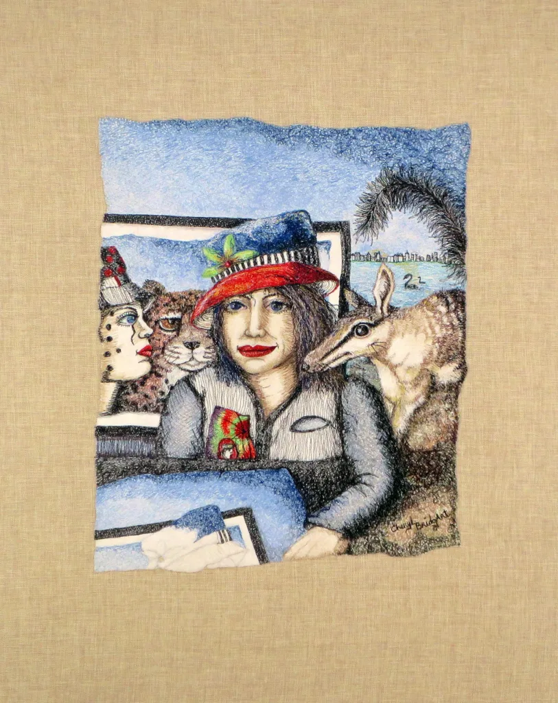 Portraits & faces appear often. Cheryl has been a finalist in every Kennedy Portrait Prize she has entered, and they have always been the only textile hung.