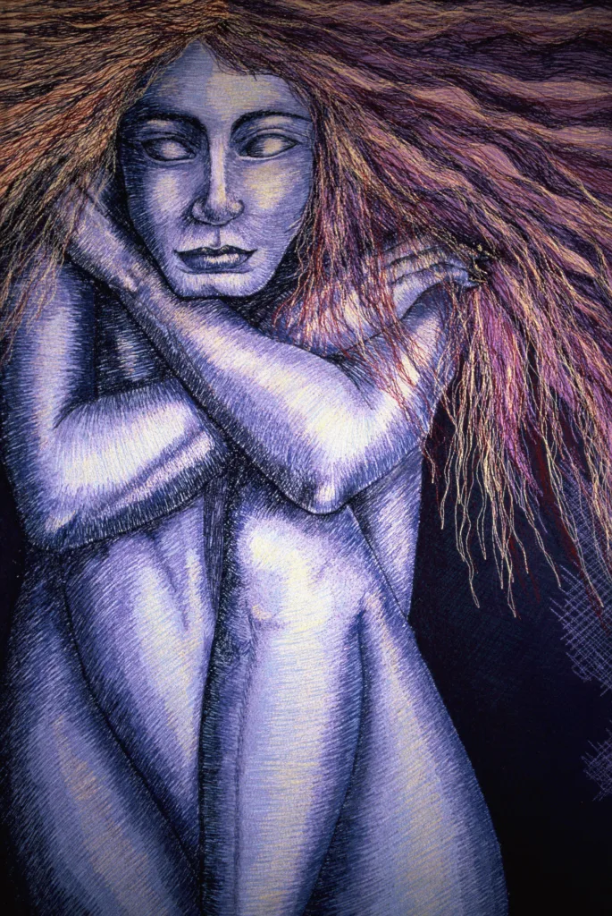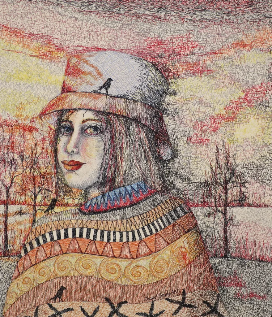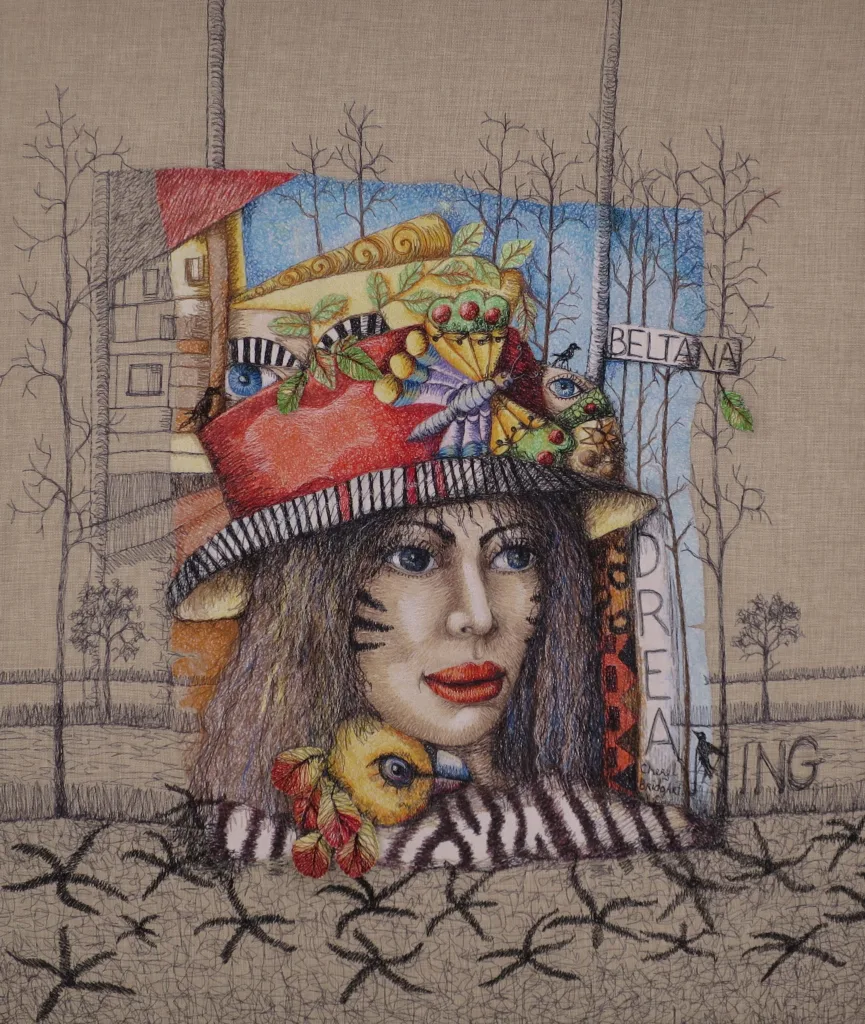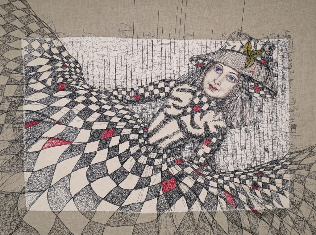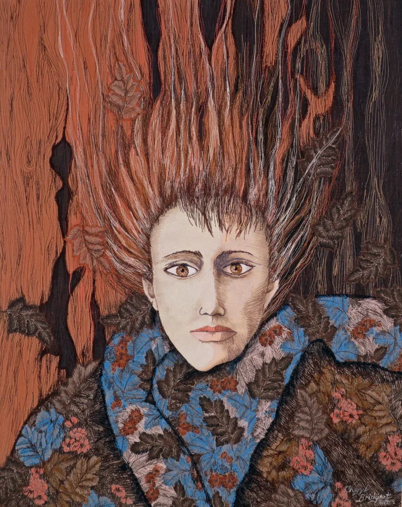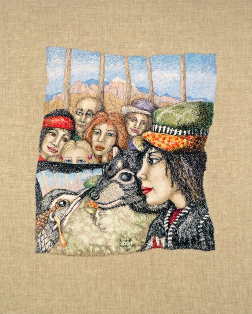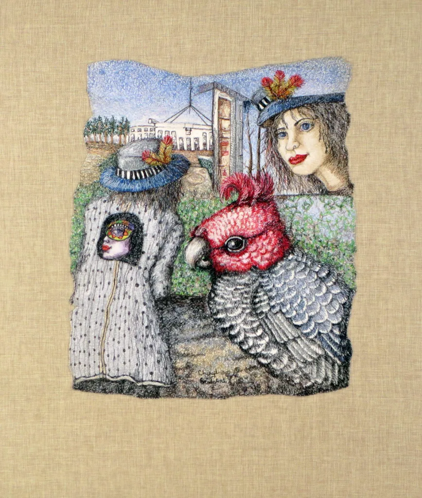 Portraits & faces appear often. Cheryl has been a finalist in every Kennedy Portrait Prize she has entered, and they have always been the only textile hung.