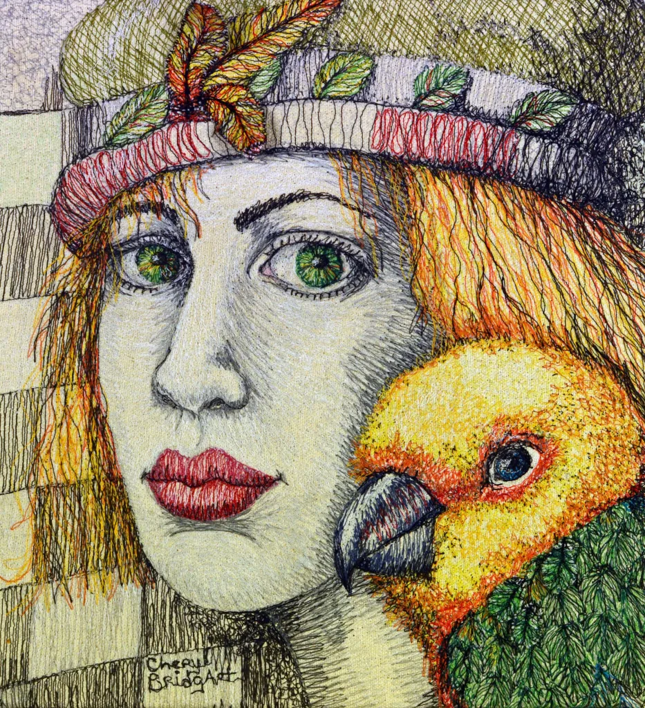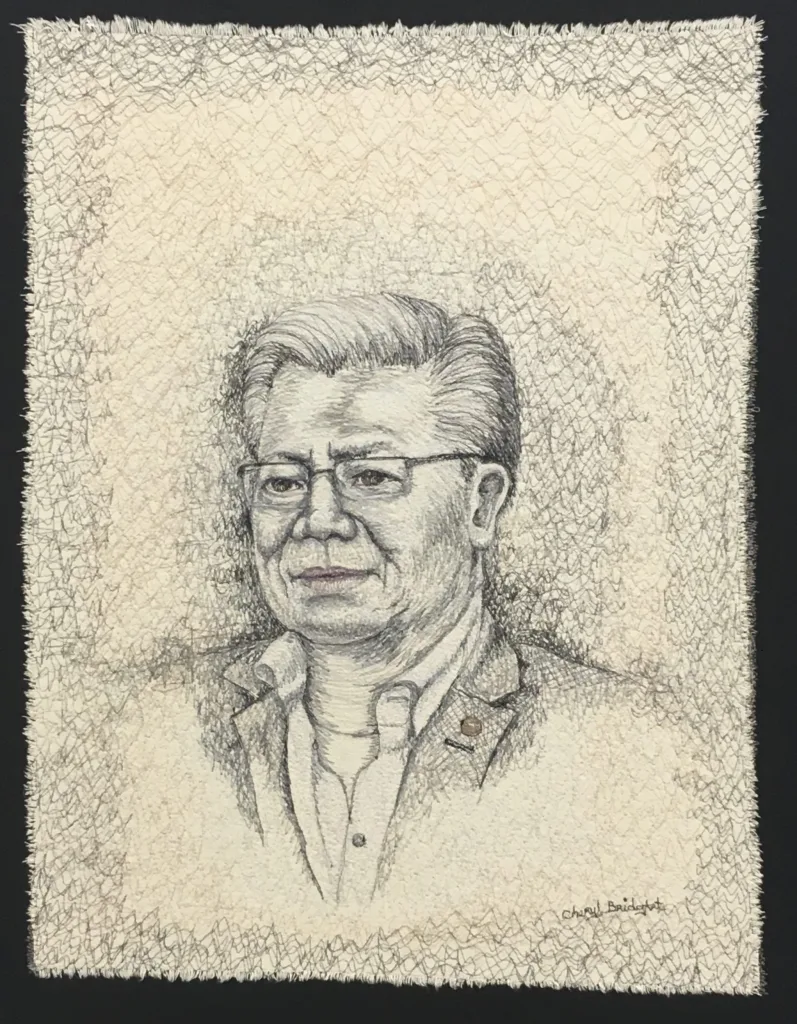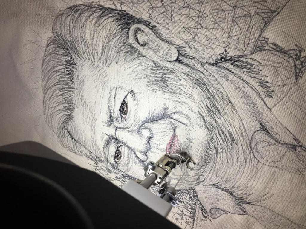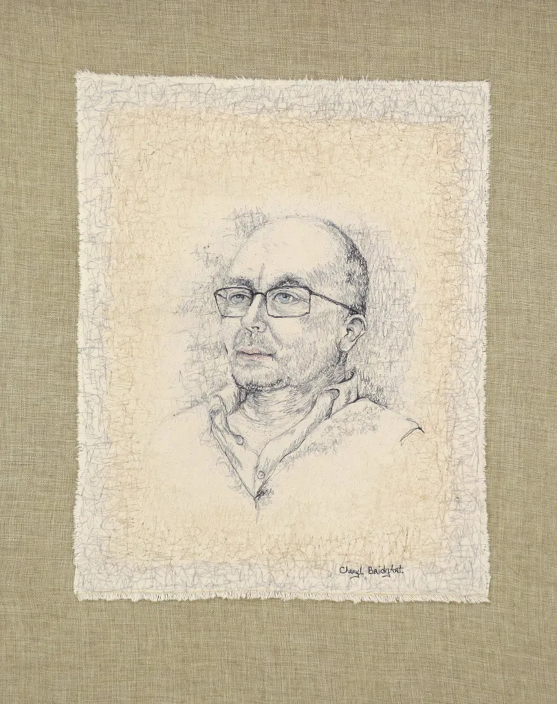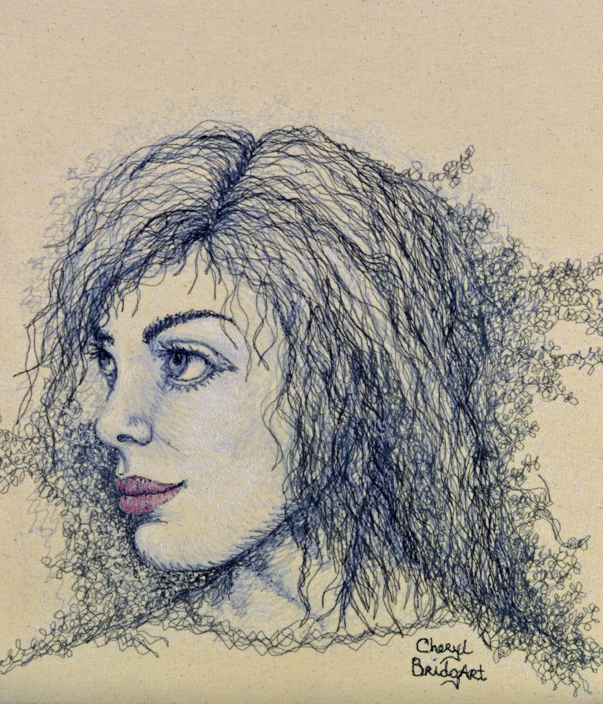 Cheryl’s lifetime dedication to improving her skill level means she can now freely embroider a traditional portrait from a live sitter.