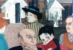 By the time I went to Nailsworth Primary School where I was already drawing.After my graduation from art school the building was converted to the Prospect Library and  Gallery, I was so excited and attached to it that building that it became the subject of my second wall artwork, I called it ‘Memories and Changes’ This artwork took 500 hours of machine embroidery indeed, the hand took all day.